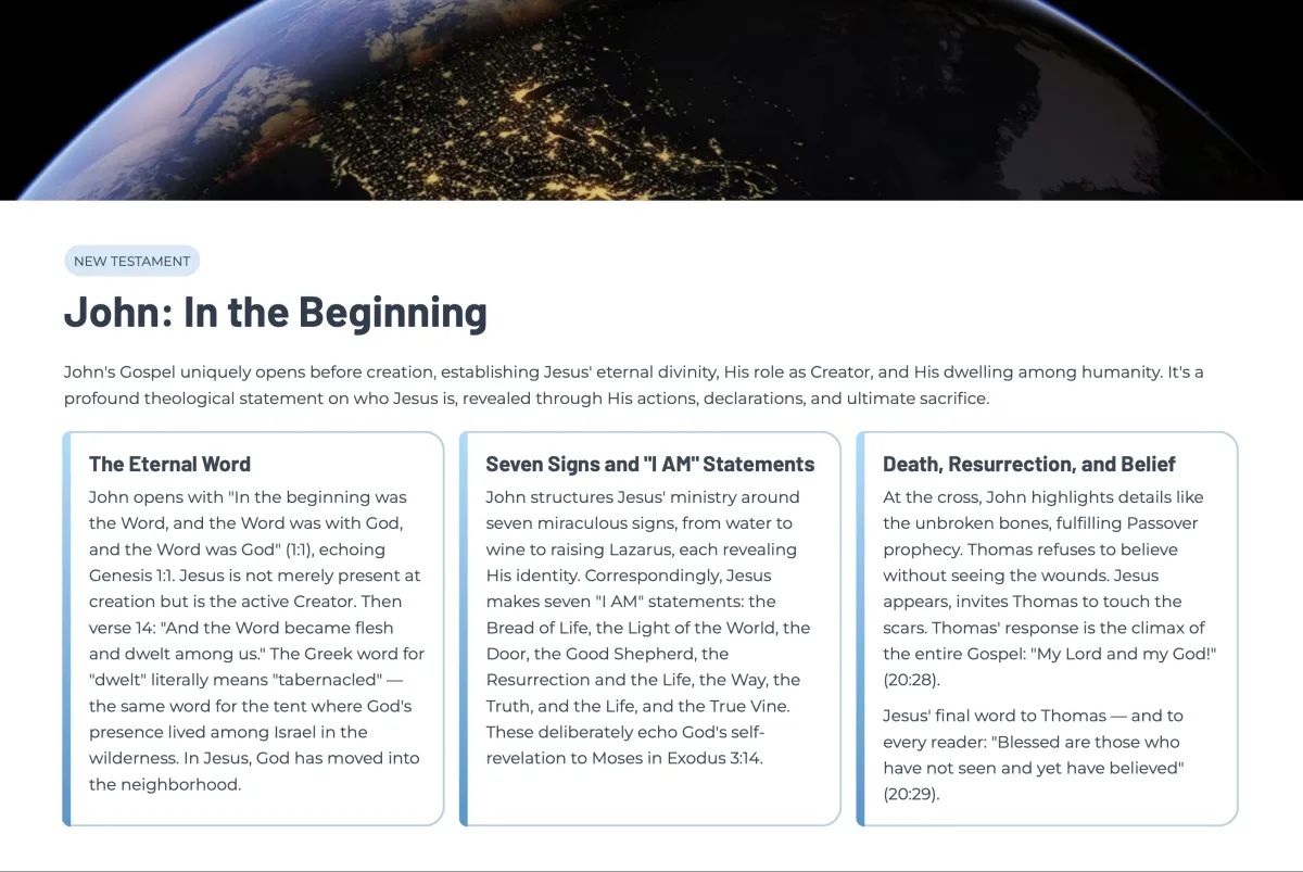 And because every guide follows the same five-part structure — Author, Context, Structure, Main Point, and Christ Connection — you always know exactly what you're looking at.
